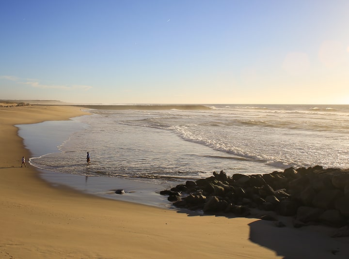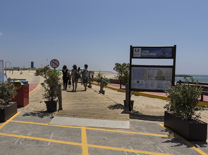 El acceso a la playa obliga atravesar la pista aérea del Aeródromo. Un inmenso arenal dividido por un pontón artificial que rodea una capilla. Se encuentra cerca del Club de Golf fundado en 1890. Câmara Municipal de Espinho