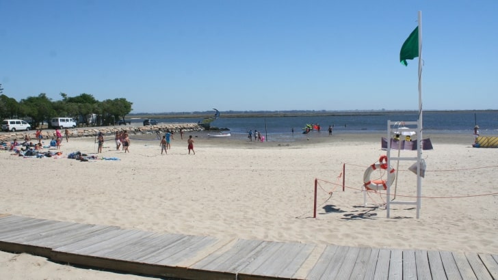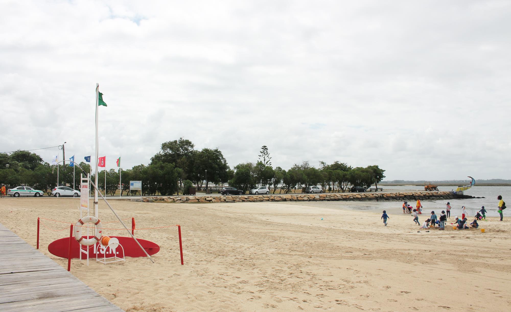 Cuenta con un estacionamiento ordenado, con capacidad para más de una centena de vehículos. Associação Bandeira Azul de Portugal.